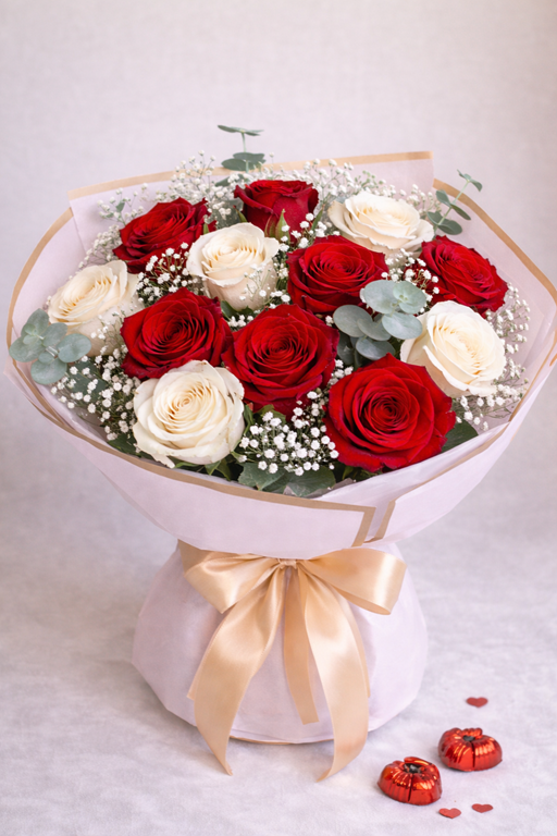 JMK Florist’s selection of romantic gifts is full of exceptionally delightful treats that will put a smile on your loveone’s face and remind them just how much you care. Included : Clear vase