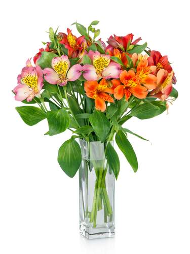 Wrapped up in the beautiful arrangement with alstroemeria will melt the heart of someone who will luckily get it. Includes : Clear Vase and Alstroemeria.
