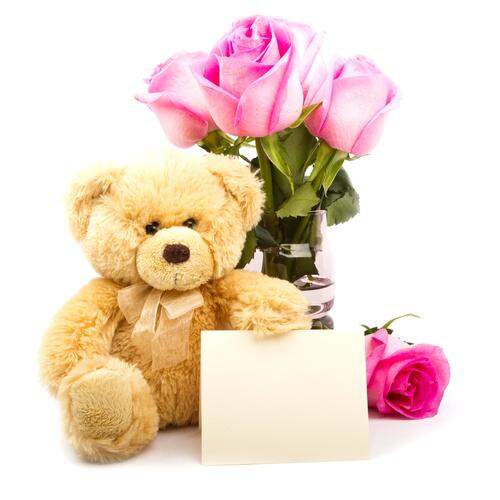 Perfect for any occasion, these flowers are a surefire way to make them smile. Includes: Small vase with 4 stems of rose, small teddy bear and small greeting card.