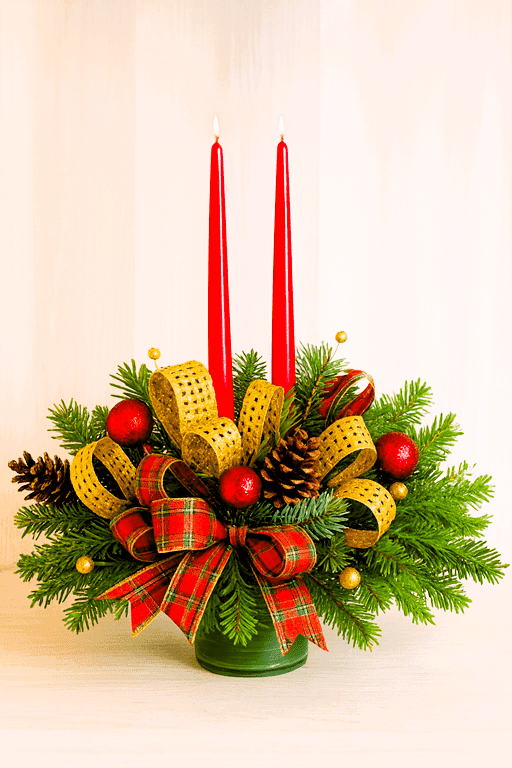 Whether you’re celebrating a birthday, expressing gratitude, or simply spreading joy, “Winter Christmas Centerpiece with Candles” is the ideal choice. Its captivating beauty and meaningful symbolism bring a smile to the recipient’s face and warmth to their heart.